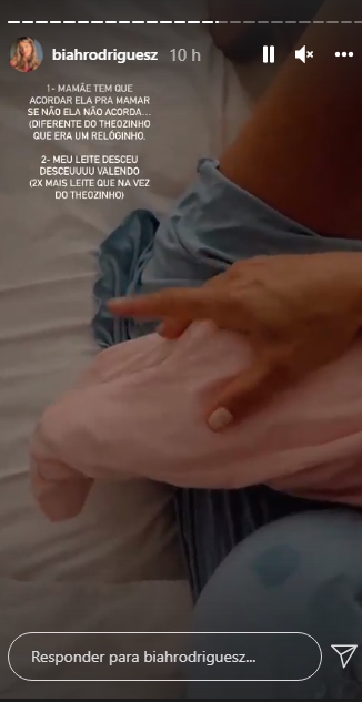 Através da rede social, a influencer contou sobre as diferenças entre a garotinha e o primogênito, Theo. Biah falou sobre as dificuldades com os seios muito cheios de leite, e ainda revelou que está lidando com um nódulo de mama.