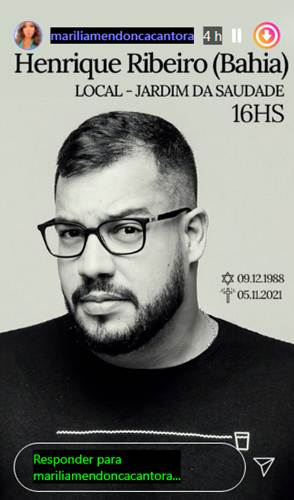 Henrique fazia parte da equipe da artista há 6 anos e, antes, já havia trabalhado com Crsitiano Araújo, morto em um acidente de carro em 2015. Neste sábado (06), a assessoria de Marília comunicou sobre o velório e enterro do baiano: “Henrique Ribeiro, Bahia, Jardim da saudade, às 16 horas”.